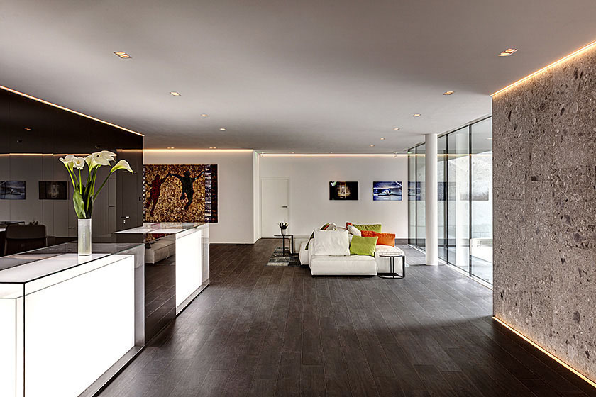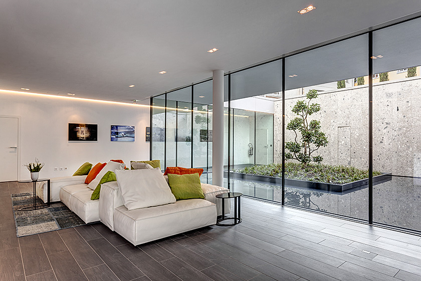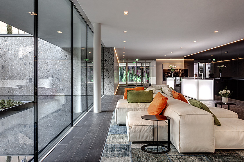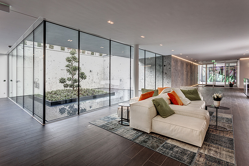 Au rez-de-chaussée, le lobby. Un vaste salon de réception proposant un service de conciergerie d’inspiration hôtelière. Accès direct aux appartements depuis le lobby et les parkings privés.