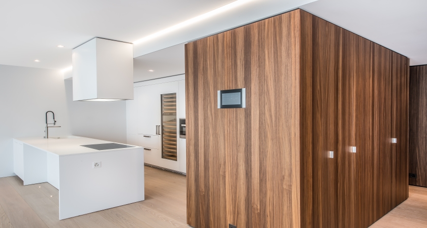 La cuisine Boffi, ouverte sur les pièces à vivre, propose un très haut niveau d’équipements.